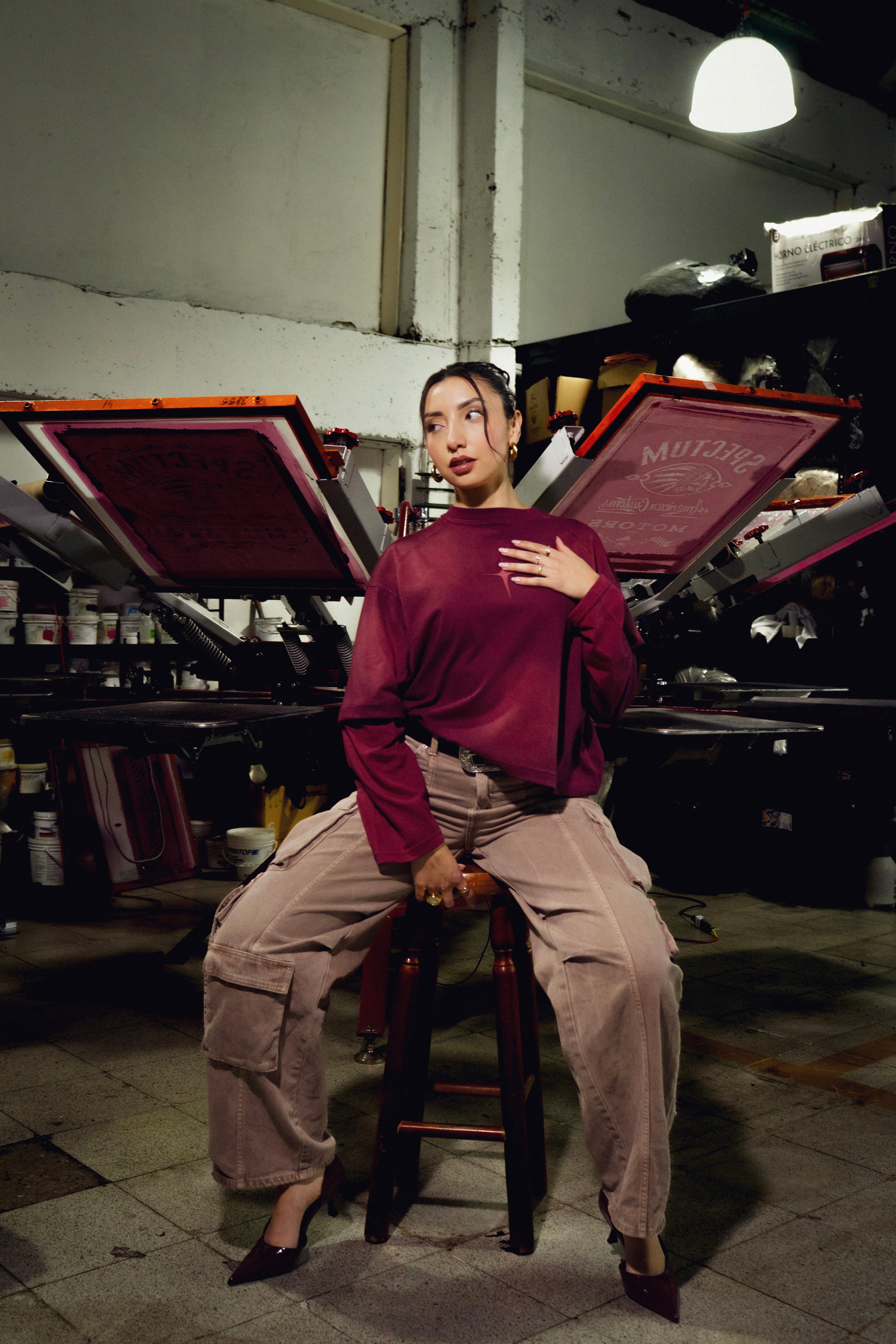 Camiseta manga larga fit boxy/cropped. Estampado logo parte trasera y brillo en parte delantera. Gastado focalizado.